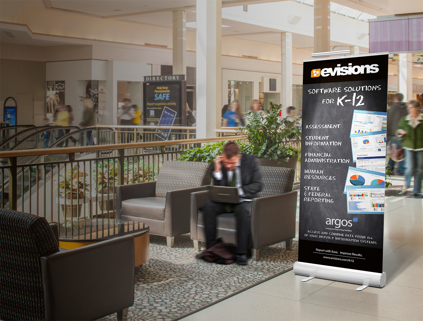 Standing roll-up banner designed for a software development company for trade shows and event marketing.